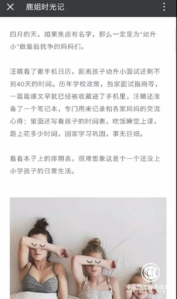 同樣反映當(dāng)今帶娃教育問題的,還有鹿姐的這篇文章《女人不就帶帶孩子,能有多累?》文中一開頭就指出:四月里最焦慮的群體就是為“幼升小”做最后抗?fàn)幍膵寢寕儭?br />