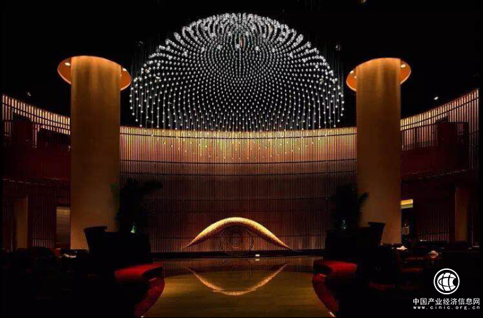 樓頂打造皇冠的燈光效果與地面燈光相呼應(yīng)。酒店大堂內(nèi),用很多木做了格柵,將燈光放在格柵后方,從下面透出,通過調(diào)節(jié)上方和下方不同亮度的燈光從而大力提升整體的格調(diào)。
