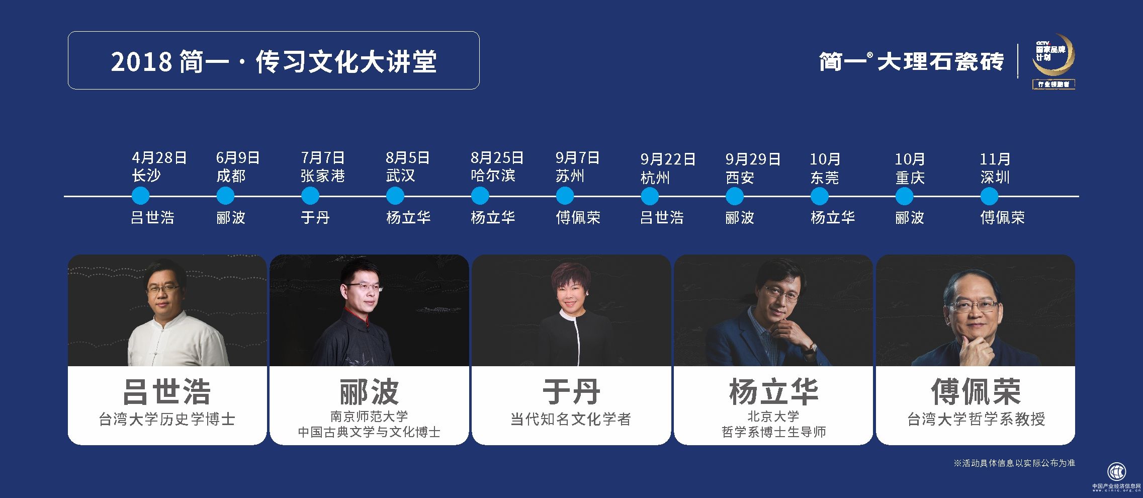 簡一主辦的傳習·文化大講堂相繼邀請知名文化學者酈波、北京大學哲學博士生導師楊立華、當代知名文化女學者于丹等文化大家,在長沙、成都、張家港、武漢等地展開全國巡回講堂,對中國儒釋道文化進行深入解讀,探尋傳統(tǒng)文化之于當下的現(xiàn)實意義。