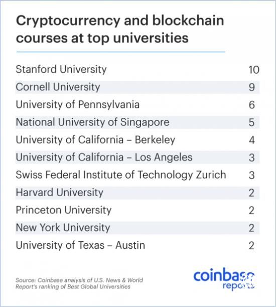 市場(chǎng)需求的極端匱乏,自然會(huì)聚集供給側(cè)前瞻者的目光。目前,全球已有29所大學(xué)明確設(shè)立區(qū)塊鏈相關(guān)課程或開(kāi)設(shè)相關(guān)培訓(xùn)班,國(guó)內(nèi)的清華大學(xué),北京大學(xué),上海財(cái)經(jīng)大學(xué)等也均在其中。在這其中,還有6所高校接受數(shù)字貨幣支付學(xué)費(fèi),并且這些高校的全球排名多在前50之列,不得不說(shuō)頂尖高校的嗅覺(jué)總是更靈敏一些。