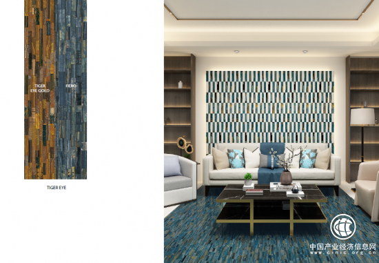 簡一大理石瓷磚虎眼石,來源于如老虎紋路的黑黃相間色調(diào);另一種藍(lán)黃黑相間色調(diào)的,則被成為簡一鷹眼石。兩款紋理均采用the state-of-the-art世界最新陶瓷科技,以匠心釉彩,與大理石瓷磚之上完美再現(xiàn)出帶有靈動光帶的“貓眼效應(yīng)”。獨(dú)特的方塊巖狀板材配合兩種不同紋理,帶來粗中有細(xì)、錯落相致,富于明暗變化的天然寶石質(zhì)感,低調(diào)而華貴。