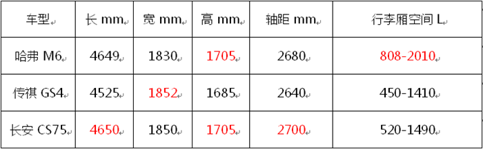 我們簡單總結(jié)了一下三款車型的整體尺寸,具體如下:
