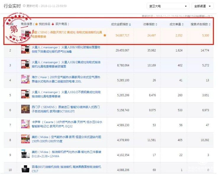 截止2018年11月11日23時(shí)59分59秒,轟轟烈烈的雙11活動(dòng)落下帷幕。以品質(zhì)見證實(shí)力,森歌集成灶豪奪京東全網(wǎng)廚衛(wèi)大家電第一及單品第一!