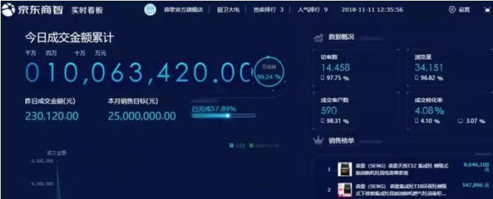 1小時(shí),森歌京東天貓雙十一銷售額破1500萬!
