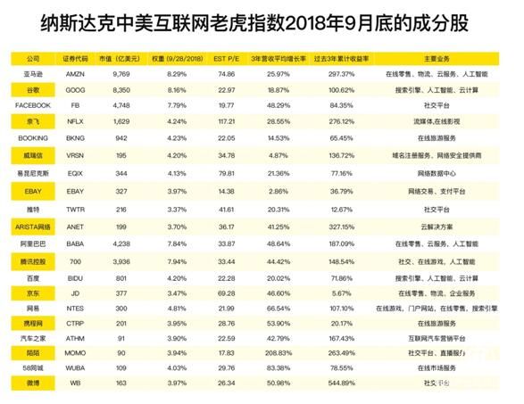 (圖:納斯達(dá)克中美互聯(lián)網(wǎng)老虎指數(shù)2018年9月底的成分股)