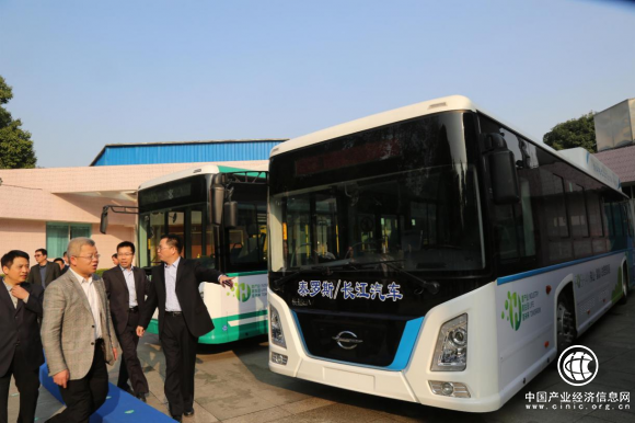 圖為長江汽車氫燃料電池公交車