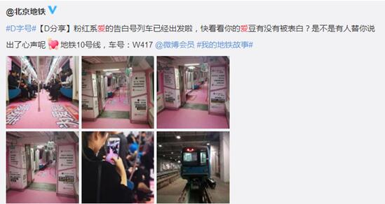 10月22日AKOKO攜手微博會員共同打造的告白號地鐵列車浪漫“發(fā)車”,北京地鐵10號線被包裝成AKOKO浪漫粉色,來自微博大V、明星粉絲、AKOKO愛好者等眾多微博用戶的告白內(nèi)容,在車廂墻上隨處可見。