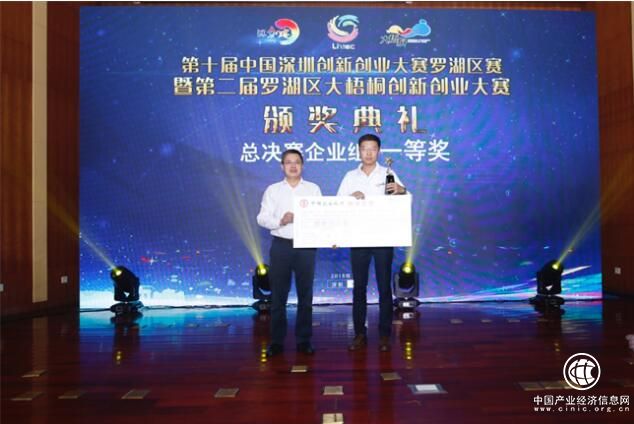 羅湖區(qū)科技創(chuàng)新局局長(zhǎng)石興中給獲獎(jiǎng)項(xiàng)目頒獎(jiǎng)