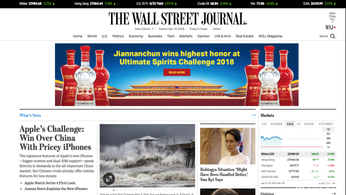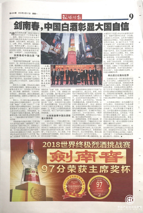 劍南春獲國際大獎(jiǎng)一方面向世界展示了中國三大名酒深厚的底蘊(yùn)和優(yōu)秀的品質(zhì),另一方面則彰顯了國富民強(qiáng),中國文化越來越被全球世界所認(rèn)可的現(xiàn)實(shí)。環(huán)球時(shí)報(bào)用整整一個(gè)版面深度報(bào)道此次事件,西方重量級(jí)媒體《華爾街日報(bào)》也以頭版頭條的重要位置刊登本次獲獎(jiǎng)事件。