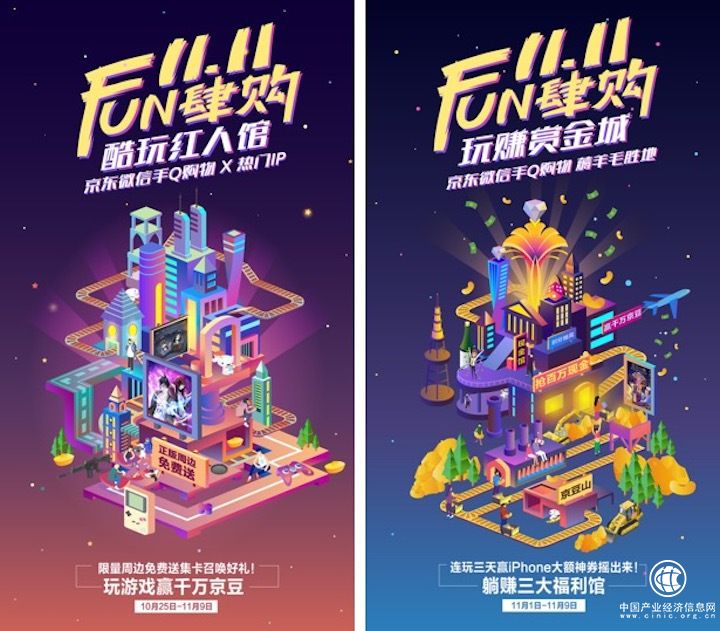 10月下旬,京東微信手Q購物便率先推出11.11FUN肆購系列海報,以酷炫的視覺元素,搶眼的心動玩法以及刷屏級的社交比拼擴散先聲奪人,彰顯新生代個性力量。