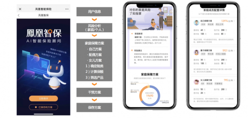 在體驗層面,便捷和精準(zhǔn)是主要特色。用戶只要簡單輸入家庭人員情況、資產(chǎn)狀況等信息,“鳳凰智保”就可以快速給出家庭綜合保險解決方案,為全部家庭成員量身定制保險配置組合,實現(xiàn)個性化保險配置。
