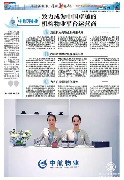 中航物業(yè)作為一家改革開放初期起源于深圳的大型物業(yè)管理企業(yè),入選了《南方日報》改革開放40周年深圳成就特別報道的“創(chuàng)新樣本”欄目,文章如下: