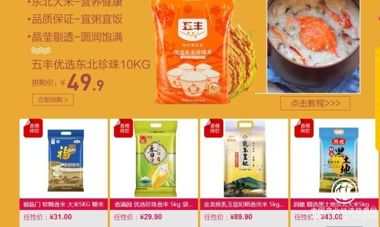 “香糯綿軟榜”適合做營養(yǎng)海鮮粥,健康營養(yǎng)的東北大米宜粥宜飯,每顆大米都晶瑩剔透圓潤飽滿,其中,五豐優(yōu)選東北珍珠10kg裝僅售49.9元。“粒粒成行榜”適合揚(yáng)州炒飯,長粒的香米做到每一粒都那樣飽滿,潔白晶瑩的大米配上良心的檢測(cè),讓你放心的品嘗每一粒大米的淡雅噴香。“膳食纖維榜”為您推薦多款健康雜糧,濃厚的米油令您享受香糯的口感,在養(yǎng)生同時(shí)品位自然的味道。其中錦谷園東北小黃米370G,拼購價(jià)僅售5.5元。“性價(jià)比之星”板塊,為您精選5款大米,福臨門東北水晶比5KG,拼購價(jià)僅售28.0元。“打榜好米”享受滿88元打九折,多款“任性價(jià)”大米等您來選購。“會(huì)員分享”版塊,5款大米給您不同程度的優(yōu)惠易購價(jià)。