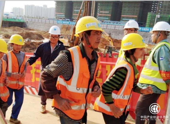 ?。▓D為保衛(wèi)疏導(dǎo)組快速進(jìn)入施工現(xiàn)場(chǎng),疏散現(xiàn)場(chǎng)作業(yè)的工人。)