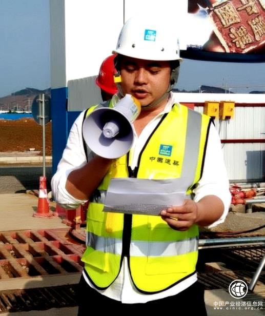 ?。▓D為項(xiàng)目執(zhí)行經(jīng)理、演習(xí)指揮長(zhǎng)熊家銘在防汛演習(xí)圓滿結(jié)束后作重要講話。)
