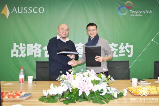 注:永洪科技何春濤(右)與澳迪香港有限公司周凱楓(左)代表公司簽署戰(zhàn)略合作協(xié)議