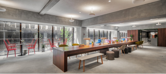 項目更是邀請到世界頂級建筑設(shè)計事務所AIM操刀空間設(shè)計,建筑外立面呈現(xiàn)經(jīng)典的Art Deco風格,二樓立面被改造為一個極富設(shè)計潮流感的玻璃盒子;而建筑內(nèi)部則在不同的辦公模塊中打造與其契合的各種風格,如在小型辦公空間中大膽運用多種色彩與質(zhì)感的材質(zhì),彰顯出輕松時髦的格調(diào);而在大型辦公區(qū)域則讓整體調(diào)性更偏大氣素雅。