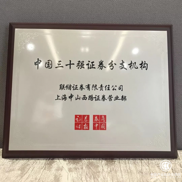 聯(lián)儲(chǔ)證券上海中山西路證券營(yíng)業(yè)部獲“中國(guó)區(qū)三十強(qiáng)證券分支機(jī)構(gòu)”