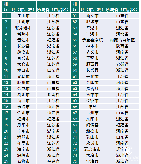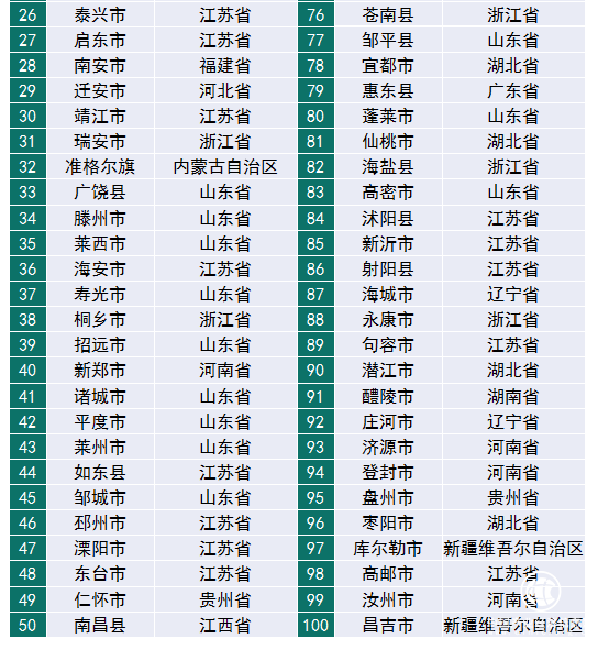 百?gòu)?qiáng)縣分布不均,東部獨(dú)占71席