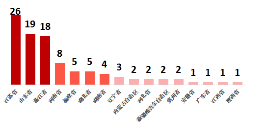 百?gòu)?qiáng)縣的區(qū)域發(fā)展極不平衡。百?gòu)?qiáng)縣東部地區(qū)占71席,中部地區(qū)占19席、西部地區(qū)占7席,東北地區(qū)有3席。與2018年相比,東部地區(qū)席位減少3位,中部地區(qū)增加3席,西部地區(qū)減少1席位,東北地區(qū)增1席。中部崛起和東北振興發(fā)展初現(xiàn)成效。
