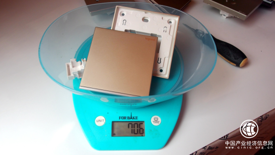 將開(kāi)關(guān)上的塑膠件拆解進(jìn)行稱(chēng)重:開(kāi)關(guān)塑膠件重量達(dá)到了70.6g,用料十足 。