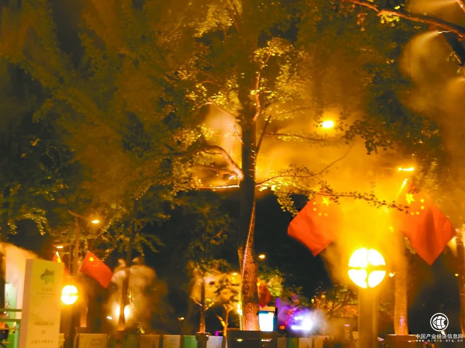 設(shè)計團隊為增加西湖特色景觀,增設(shè)了霧森系統(tǒng)和控光系統(tǒng),打造“湖光走廊”,定制出了樹干位置的金屬防護架,做到見光不見燈,避免纏繞損傷樹木,同時避免地埋燈折射傷害游客眼睛。白天天氣炎熱的時候,自動開啟噴霧,來降低室外溫度;在夜晚,霧森結(jié)合控光系統(tǒng)實現(xiàn)彩色光變化,形成美輪美奐的節(jié)日氛圍。