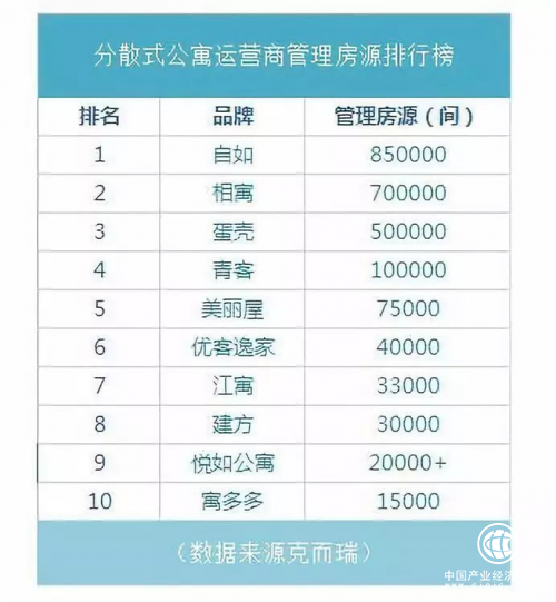 分布式公寓運營商管理房源排行榜——北京自如高居榜首