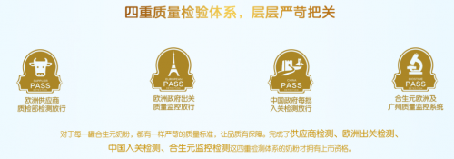 嚴(yán)苛的品控是合生元奶粉品質(zhì)的保障也是上榜的理由。每一罐合生元奶粉都需經(jīng)過“四重防火墻”,才能夠最終流通進(jìn)入市場(chǎng),需要經(jīng)過產(chǎn)地政府以及國外供應(yīng)商的“考驗(yàn)”,方可出品及獲得原產(chǎn)國證明。且每一罐合生元奶粉都可以追溯源頭。