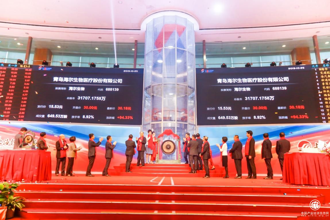 10月25日上午9點30分,青島市人民政府副秘書長王振東,海爾集團總裁、董事局副主席周云杰,青島海爾生物醫(yī)療股份有限公司董事長譚麗霞等人共同敲響了海爾生物科創(chuàng)板上市的鑼聲。自此,青島海爾生物醫(yī)療股份有限公司正式在科創(chuàng)板上市,股票簡稱“海爾生物”,股票代碼“688139”。