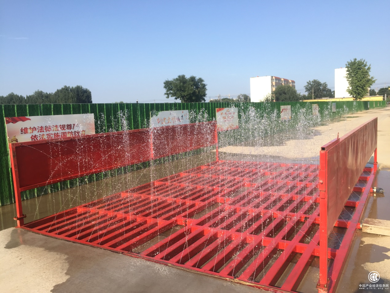 (圖:為了防止運(yùn)輸車輛將塵土帶出工地,項(xiàng)目現(xiàn)場(chǎng)還安裝洗車設(shè)備。)
