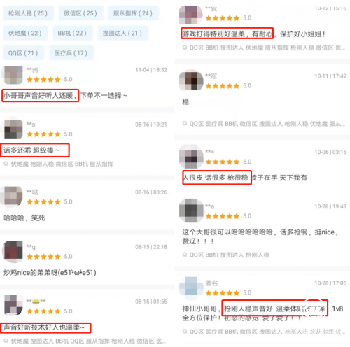 在比心陪練上找大神一起打游戲,這幾年在年輕人中逐漸流行開來。除了陪練cp體驗官林顏和狗子,呆妹兒、韓跑跑、苓妹妹、小曲兒、KBShinya、肥皂菌等眾多人氣主播、歌手也紛紛入駐比心陪練。比心陪練APP還被王力宏、鄧紫棋、華晨宇、佟大為等多位知名歌手和演員傾情推薦,連酷愛玩游戲的王思聰也順應潮流,注冊了比心陪練賬號接單。