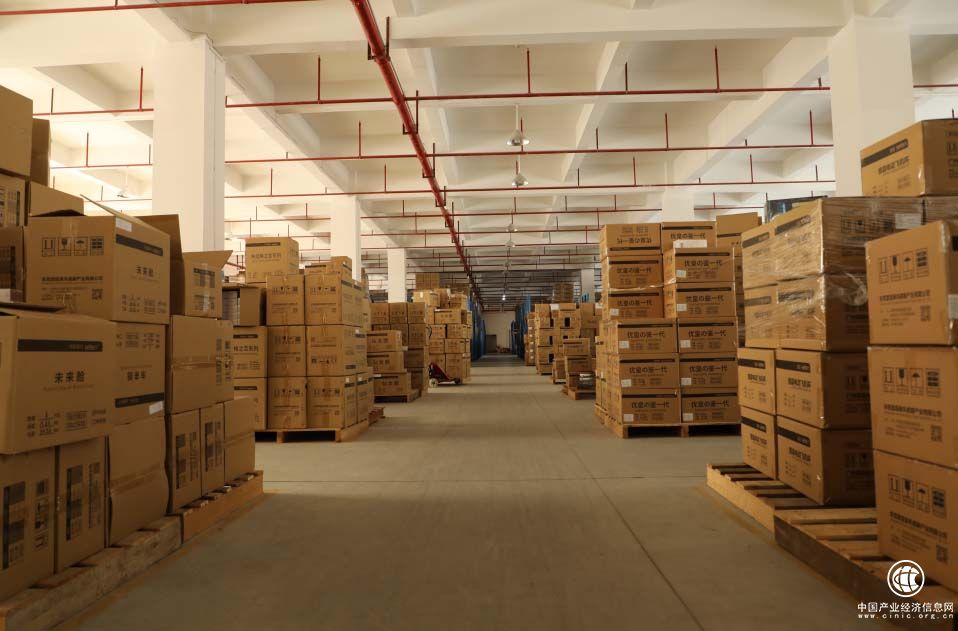我們首先參觀(guān)的是工廠(chǎng)的一樓,這里是倉(cāng)庫(kù)作業(yè)區(qū),貨架上整齊的排放著密密麻麻的產(chǎn)品。
