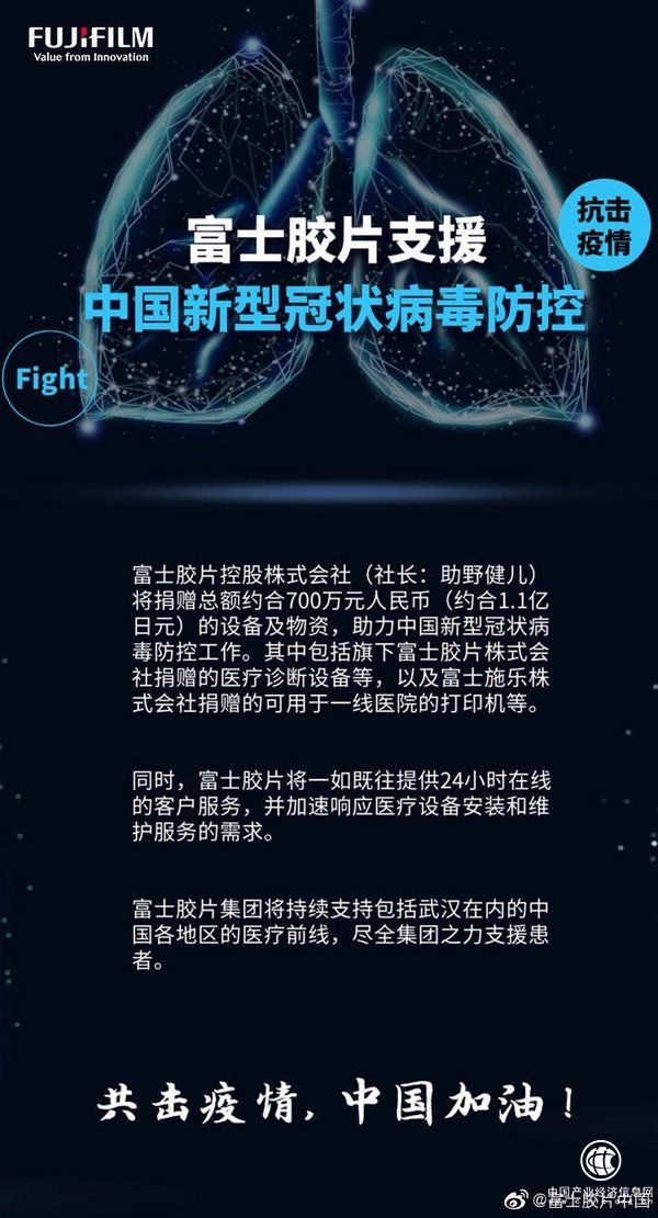 富士膠片集團(tuán)謹(jǐn)向此次武漢新型冠狀病毒肺炎患者致以誠(chéng)摯的問(wèn)候,并將持續(xù)支持包括武漢在內(nèi)的中國(guó)各地區(qū)的醫(yī)療前線,盡全集團(tuán)之力支援患者。