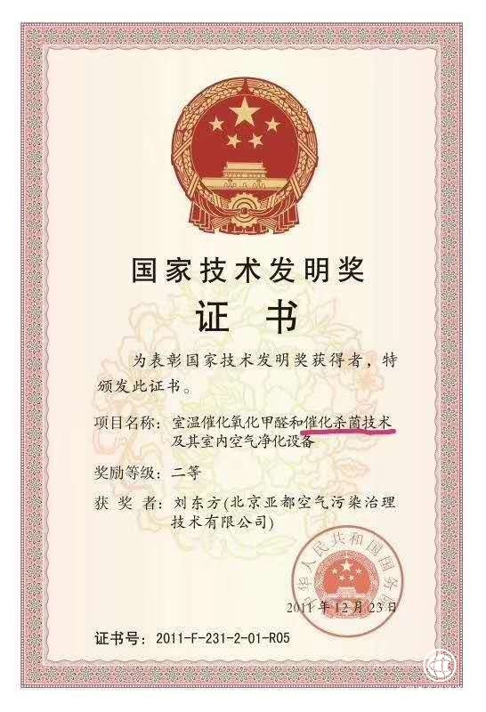 尤為值得一提的是,早在2011年,亞都攜手中國(guó)科學(xué)院聯(lián)合研發(fā)的“室溫催化氧化甲醛和催化殺菌技術(shù)及其室內(nèi)空氣凈化設(shè)備”獲國(guó)家技術(shù)發(fā)明獎(jiǎng)二等獎(jiǎng)。