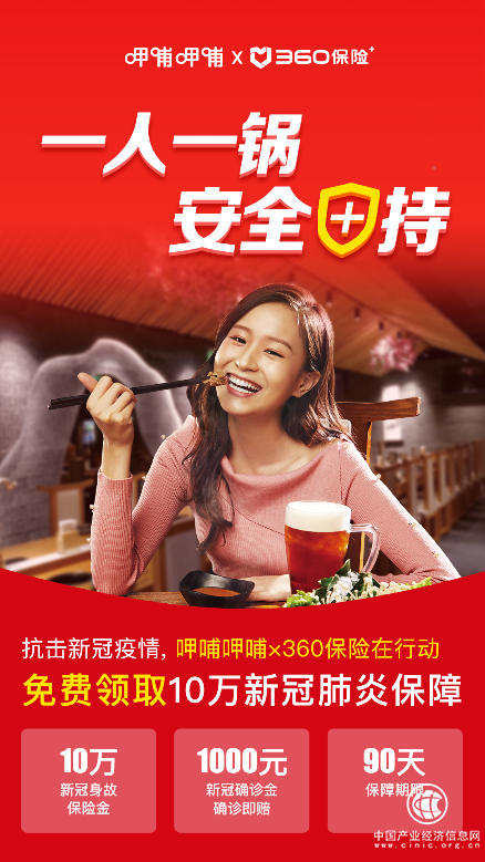 抗擊新冠疫情,全民在行動?;ヂ?lián)網(wǎng)保險平臺360保險推出“360防疫保·新冠肺炎定制保障”,18-75歲人群可免費領(lǐng)取10萬元新冠肺炎身故保險金和1000元確診金。日前360保險聯(lián)合著名餐飲品牌呷哺呷哺,推出新冠疫情保障計劃,共同為抗擊疫情構(gòu)筑安全保障防線 。