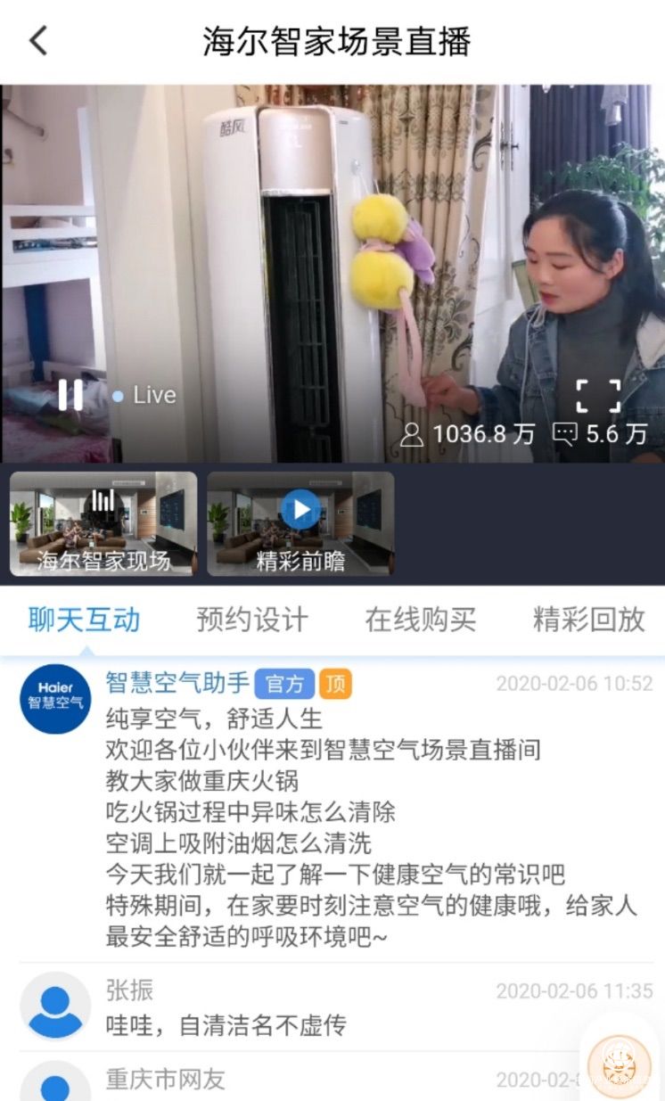 在天津海光寺蘇寧門店,海爾空調(diào)銷售人員通過微信社群交互和抖音直播等形式,幫助用戶在線選健康空調(diào)。2月9日,天津陳先生在看直播時,對天凈空調(diào)的紫外線殺菌功能非常感興趣,他在線上咨詢,“這款空調(diào)殺菌功能怎么使用?殺菌功能可以單獨開嗎?”了解到空調(diào)的殺菌效果后陳先生果斷下單:“家里有老人和孩子,長期呆在家對空氣消毒就更關(guān)注了,這款空調(diào)正好能解決這個問題。”
