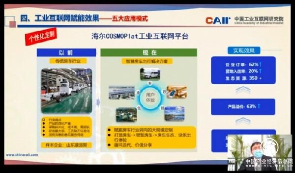 在《工業(yè)互聯(lián)網(wǎng)賦能實(shí)體經(jīng)濟(jì)轉(zhuǎn)型升級(jí)》的主題演講中,田野從概念內(nèi)涵、發(fā)展態(tài)勢、賦能效果等維度詳細(xì)介紹了工業(yè)互聯(lián)網(wǎng)。他重點(diǎn)介紹了卡奧斯COSMOPlat代表的個(gè)性化定制、中信云網(wǎng)的網(wǎng)絡(luò)化協(xié)同、樹根互聯(lián)的服務(wù)化延伸等五大應(yīng)用模式。