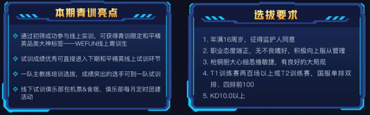 比心陪練聯(lián)合WEFUN舉辦的首期和平精英青訓(xùn)招募正在進行中。報名的大神玩家由WEFUN一隊主教練親自選拔和培訓(xùn),經(jīng)過初篩和線上試訓(xùn),成績突出的選手將前往一隊線下試訓(xùn),不僅有機會加入天霸青訓(xùn)隊,還有可能直接加入WEFUN一隊成為PEL職業(yè)選手。