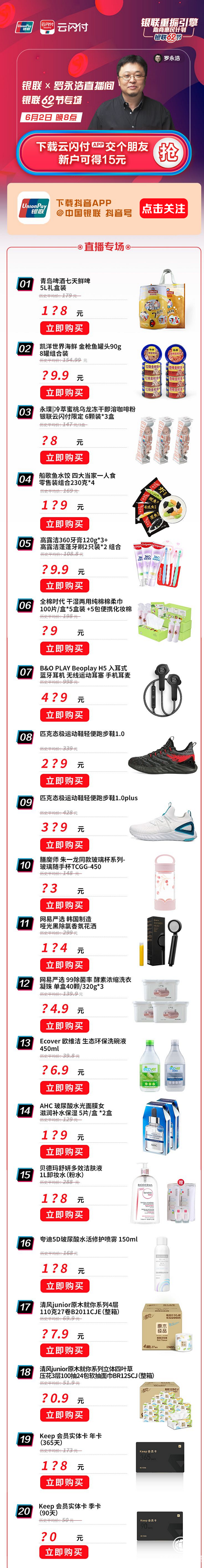 可以預(yù)見,明星、企業(yè)、品牌甚至“國(guó)家隊(duì)”選擇到抖音直播帶貨已經(jīng)成為大勢(shì)所趨。這次,羅永浩牽手中國(guó)銀聯(lián)助商惠民,他們的口碑聯(lián)動(dòng)加上抖音海量流量支持能否組成現(xiàn)象級(jí)IP,又將創(chuàng)造出什么樣的直播成績(jī)?6月2日晚8點(diǎn)讓我們一起拭目以待!