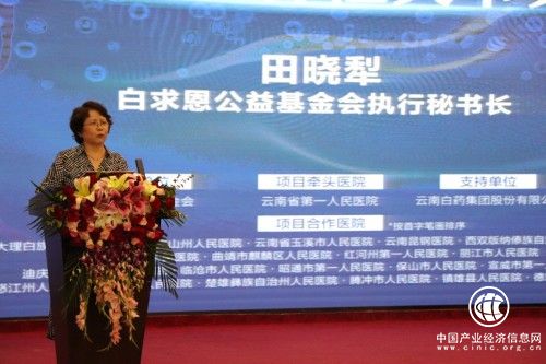 白求恩公益基金會理事、云南白藥集團黨委副書記、高級副總裁王錦女士作為企業(yè)代表,對項目啟動表示祝賀,并對各位領導、專家學者相聚昆明表示歡迎。本次項目惠及云南省各地州城市,可以幫助很多患者康復。脫貧,云南白藥集團非常榮幸能夠貢獻自己的一份力量,云南白藥作為骨傷科領域的中成藥,其療效和安全性也得到了專家的認可。同時,云南白藥也會把骨傷科作為今后發(fā)展的方向,持續(xù)研發(fā)和推出高質量的產品,幫助患者擺脫病痛,最后衷心祝愿此次項目圓滿完成。
