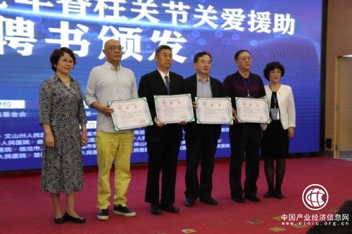 然后,白求恩公益基金會張娟娟秘書長代表基金會宣讀了《宣讀關于“白求恩·老年脊柱關節(jié)關愛援助”項目設立項目專家組及設立項目合作醫(yī)院的決定》,由陸主任主持舉行啟動儀式,并由兩位秘書長為項目顧問、組長、副組長頒發(fā)聘書,為21家合作醫(yī)院授牌。