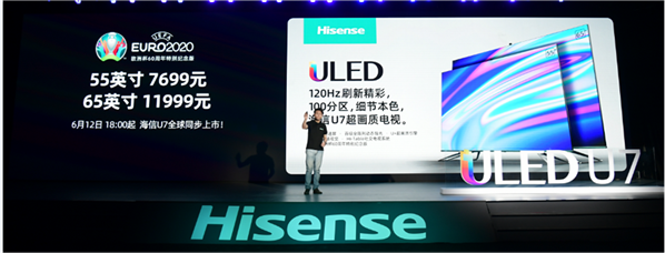 6月12日,海信舉辦了線上全球發(fā)布會,正式推出2020歐洲杯60周年特別紀(jì)念版產(chǎn)品ULED超畫質(zhì)電視U7。“比賽可以被疫情推遲,但我們對足球、對生活的熱愛不會被推遲,”海信視像科技副總裁王偉在發(fā)布會上說,海信對電視科技更新迭代的熱愛更不會被推遲。