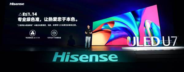 U7擁有130%BT.709高色域以及專業(yè)級色準(zhǔn),呈現(xiàn)的細(xì)節(jié)更清晰,色彩過渡更流暢。要知道一般△E小于2就屬于非常優(yōu)秀的水平,U7的△E可以做到1.14以內(nèi)。不僅如此,工程師還利用AI融合場景調(diào)校,包括電影、體育等12大場景色彩精準(zhǔn)還原,使得色彩表現(xiàn)更進一步。