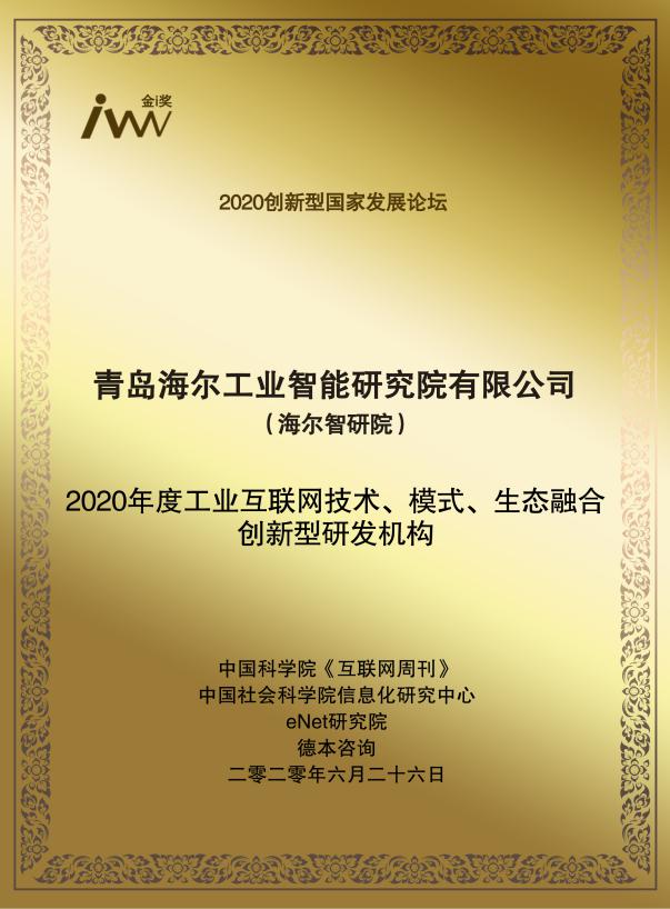 6月26日,由中國科學(xué)院《互聯(lián)網(wǎng)周刊》、中國社會(huì)科學(xué)院信息化研究中心、eNet研究院等單位主辦的“2020創(chuàng)新型國家發(fā)展論壇”在線上舉辦。在論壇分批公布的2020創(chuàng)新類金i獎(jiǎng)名單中,海爾工業(yè)智能研究院獲評(píng)“2020年工業(yè)互聯(lián)網(wǎng)技術(shù)、模式、生態(tài)融合創(chuàng)新型研發(fā)機(jī)構(gòu)”。同時(shí),這也是繼2019年度獲評(píng)優(yōu)秀智能制造企業(yè)之后,時(shí)隔半年后再次獲得行業(yè)創(chuàng)新大獎(jiǎng)。