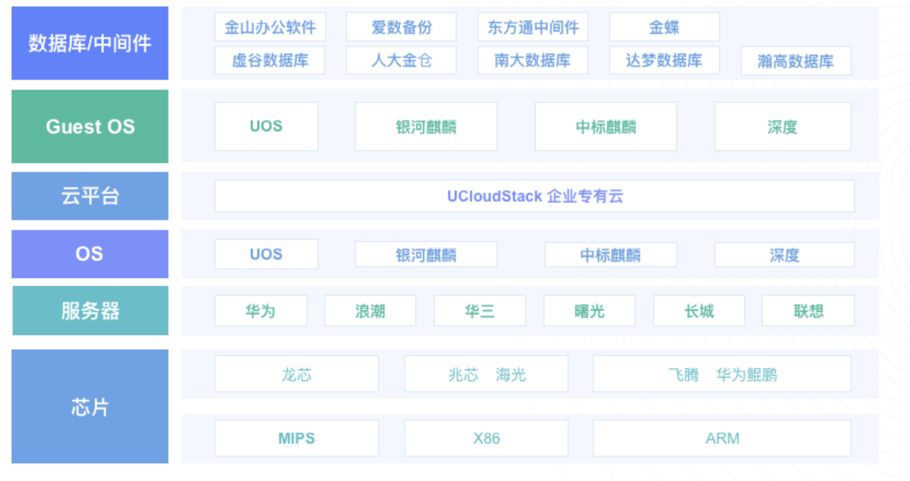 為更好的滿足企業(yè)、政府對IT基礎設施安全可靠的需求,經(jīng)過多輪測試驗證后,UCloud優(yōu)刻得旗下的輕量級私有云產(chǎn)品UCloudStack,已完成從硬件、基礎軟件到應用軟件的全方位適配開發(fā),正式推出信創(chuàng)版私有云 。