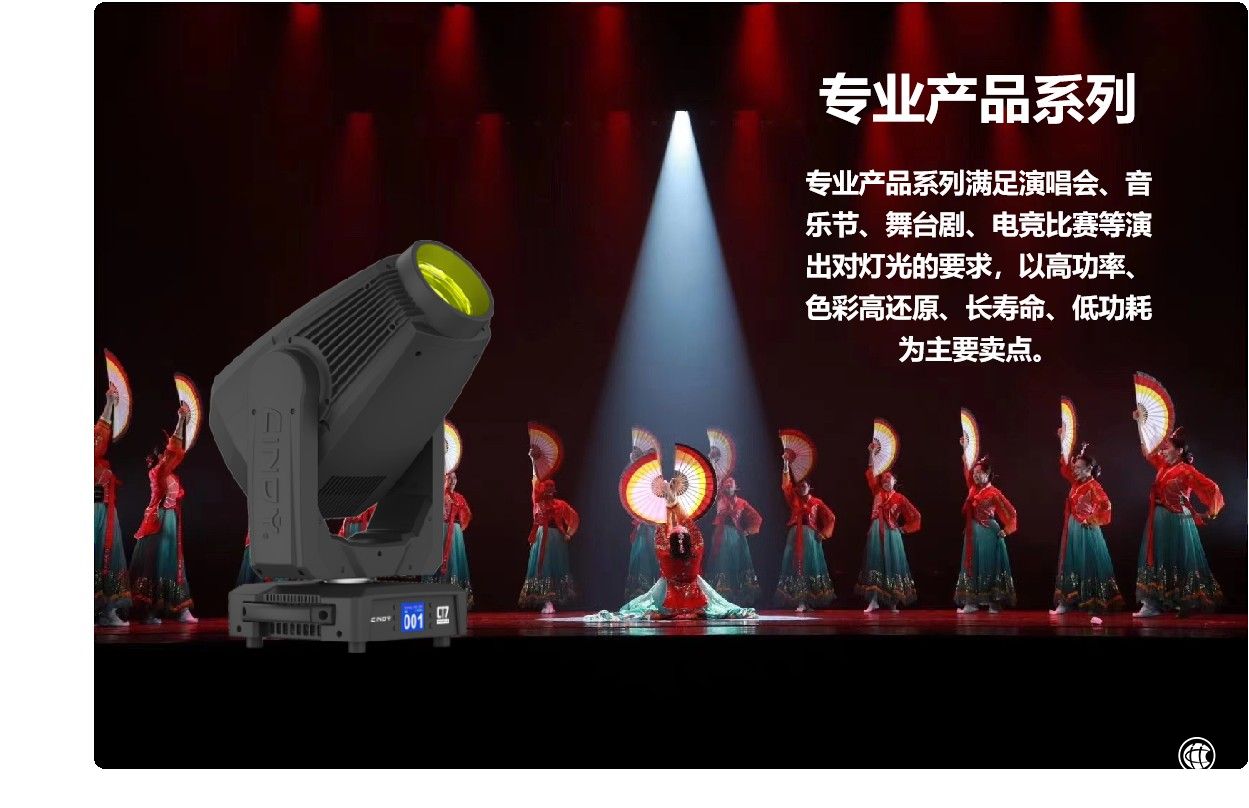 其中“Cindy”舞臺燈光系列,因為過硬的技術(shù)和嚴(yán)謹(jǐn)?shù)闹谱髁鞒?,使產(chǎn)品無論從設(shè)計、性能、質(zhì)量、工藝等方面均達到國際頂尖水平。