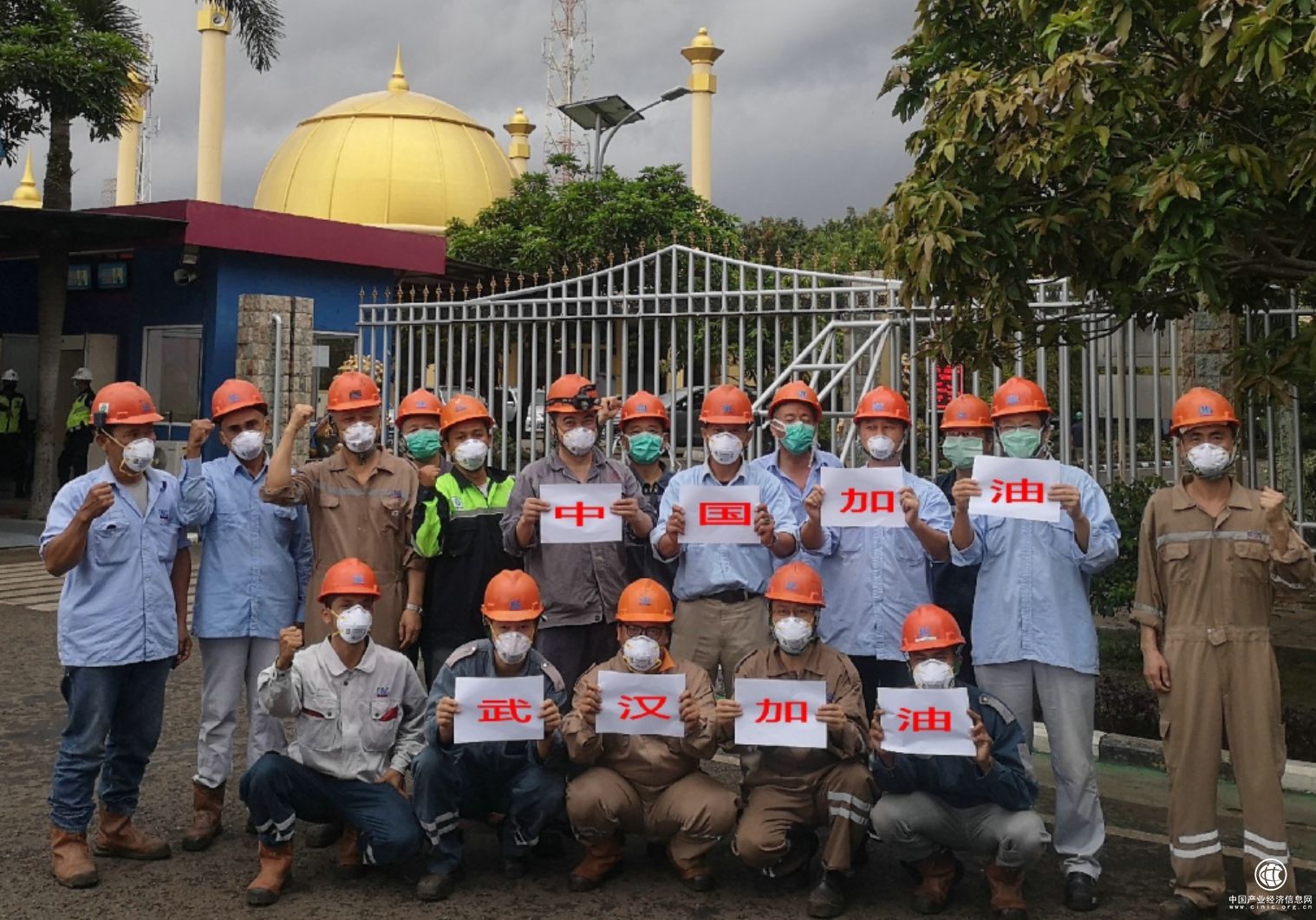 在中國大唐安徽發(fā)電公司承擔(dān)運維工作的印尼芝拉扎電站,中印雙方人員共同為中國加油,為武漢加油