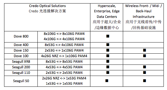 楊學(xué)賢介紹,Credo的另一項(xiàng)競爭力,是能夠同時提供連接服務(wù)器與TOR/EOR交換機(jī)、機(jī)架內(nèi)連接的DSP芯片,這在國內(nèi)DSP芯片廠家中可能是唯一的。這意味著客戶可以在數(shù)據(jù)中心光互聯(lián)中選擇同一廠家的DSP芯片產(chǎn)品,對其網(wǎng)絡(luò)穩(wěn)定性、售后服務(wù)都是很好的保障。