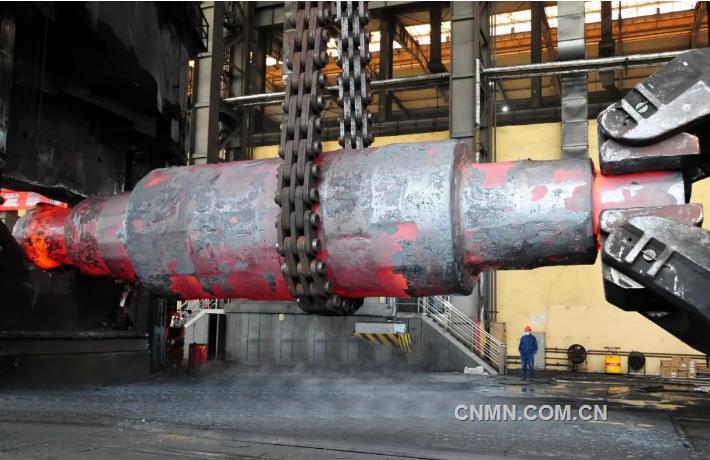 中信重工機械股份有限公司為重點客戶制造的全球首套、“軋機之王”5600mm軋機關鍵件支承輥鍛件、在河南洛陽總部18500噸油壓機鍛造完成。