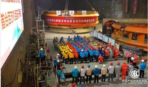 2018年11月24日,白鶴灘水電站首臺(tái)百萬(wàn)千瓦機(jī)組座環(huán)吊裝儀式在白鶴灘地下廠房舉行